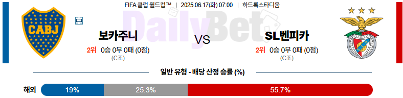 “후반 운영 안정성과 전술 응집력에서 앞선 벤피카가 보카를 압도할 가능성 높은 매치업”