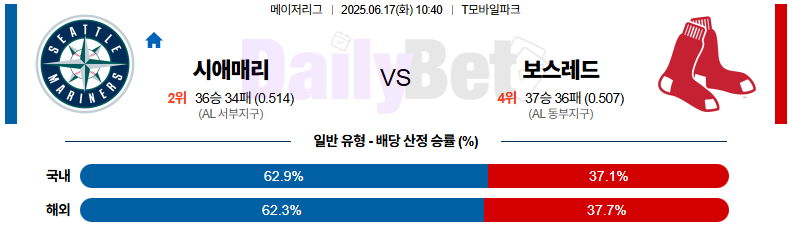 야구 06월 17일 MLB 시애틀 vs 보스턴