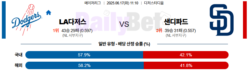 야구 06월 17일 MLB LA다저스 vs 샌디에이고