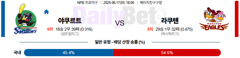 야구 06월 17일 NPB 야쿠르트 vs 라쿠텐
