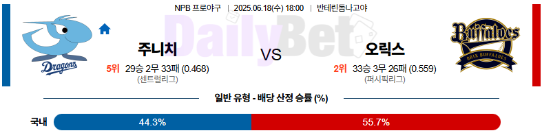 ⚾️ 주니치 드래건즈 vs 오릭스 버팔로즈 (NPB)