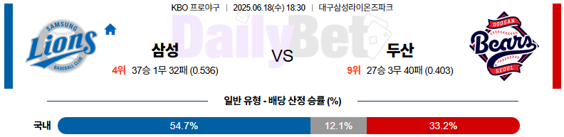 ⚾️ 삼성 라이온즈 vs 두산 베어스 (KBO리그)