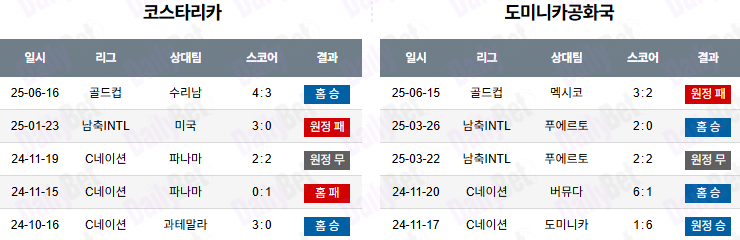 “측면 침투와 전방 압박 강한 코스타리카, 수비 불안 노출 도미니카 압도 전망”