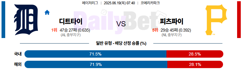 야구 06월 19일 MLB 디트로이트 vs 피츠버그