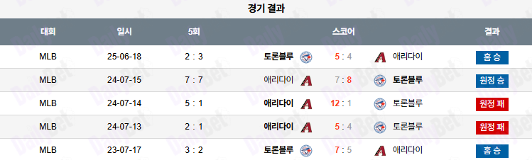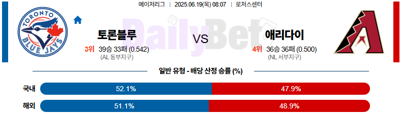 야구 06월 19일 MLB 토론토 vs 애리조나