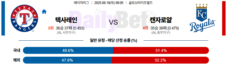 야구 06월 19일 MLB 텍사스 vs 캔자스시티