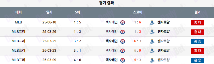 ⚾️ 텍사스 레인저스 vs 캔자스시티 로얄스 (MLB)