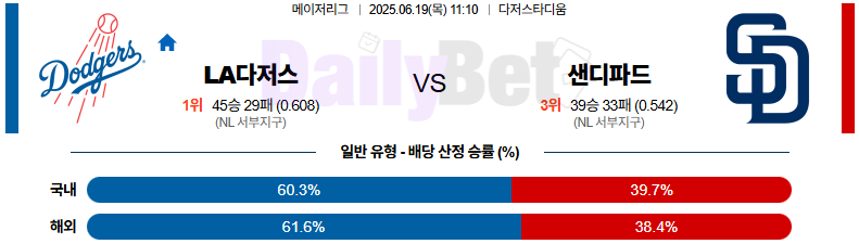 야구 06월 19일 MLB LA다저스 vs 샌디에이고