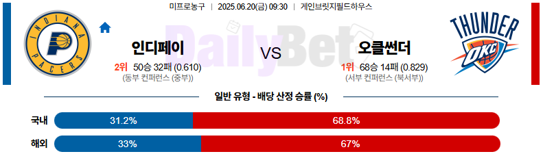 농구 06월 20일 NBA 인디애나 페이서스 vs 오클라호마시티 썬더