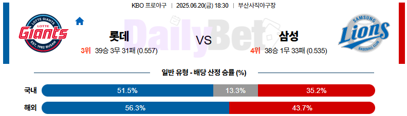 ⚾️ 롯데 자이언츠 vs 삼성 라이온즈 (KBO)