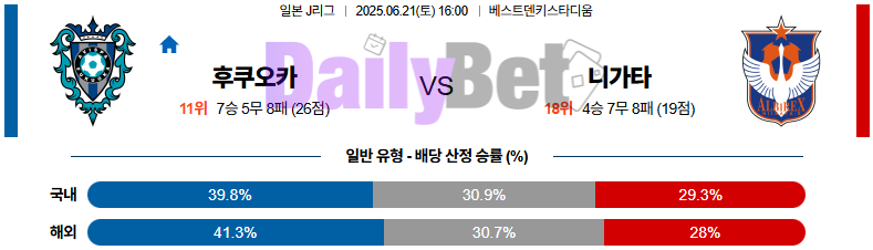 “수비 조직과 템포 조절 모두 후쿠오카가 앞서며, 니가타는 원정에서 탈압박 문제 반복 예상”