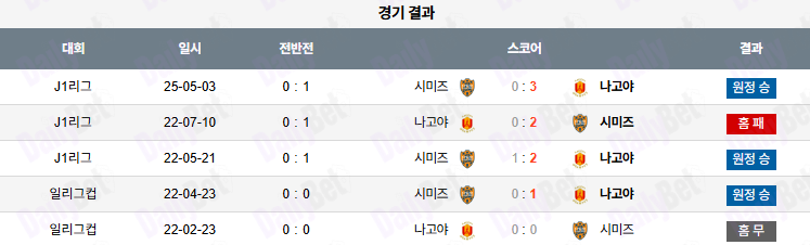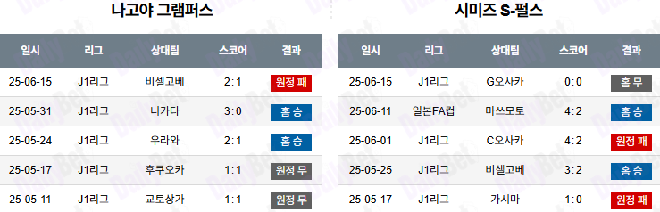 | 항목 | 나고야 그램퍼스 | 시미즈 에스펄스 |