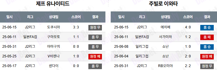 | 항목 | 제프 유나이티드 | 주빌로 이와타 |