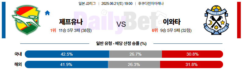 ⚽️ 제프 유나이티드 vs 주빌로 이와타 (J2리그)