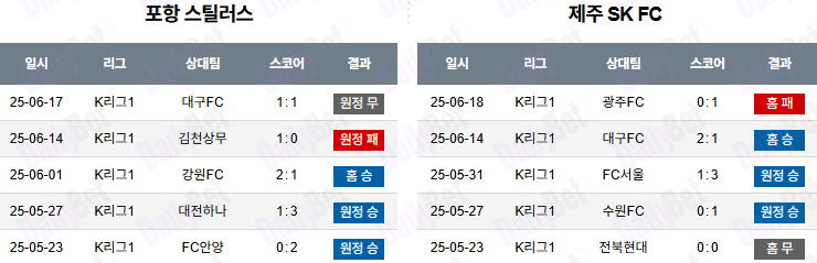 반면 제주는 여름철 복잡한 원정 동선과 회복일 부족으로 체력적 부담이 크며, 경기 후반 집중력 저하 가능성 뚜렷.
