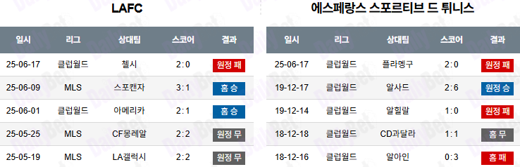 | 항목 | LAFC | 에스페란스 튀니스 |