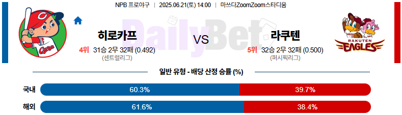 야구 06월 21일 NPB 히로시마 vs 라쿠텐