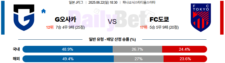 ✅ 감바 오사카가 전반부터 경기 흐름을 주도하며 안정적으로 전개할 가능성 높음