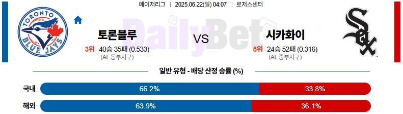 야구 06월 22일 MLB 토론토 vs 시카고W