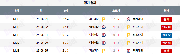 ⚾️ 피츠버그 파이어리츠 vs 텍사스 레인저스 (MLB)