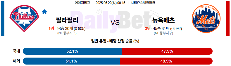 야구 06월 22일 MLB 필라델피아 vs 뉴욕메츠