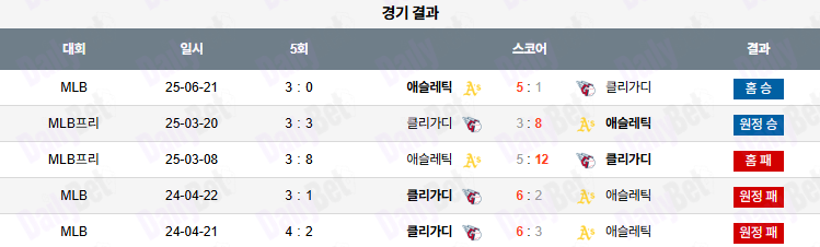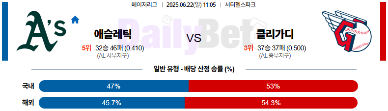 ⚾️ 애슬레틱스 vs 클리블랜드 가디언즈 (MLB)