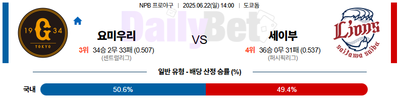 야구 06월 22일 NPB 요미우리 vs 세이부