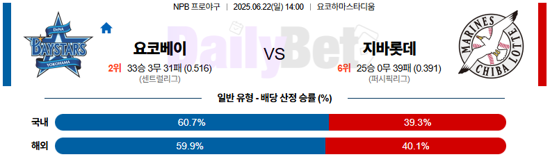 ⚾️ 요코하마 DeNA 베이스타스 vs 치바 롯데 마린즈 (NPB)