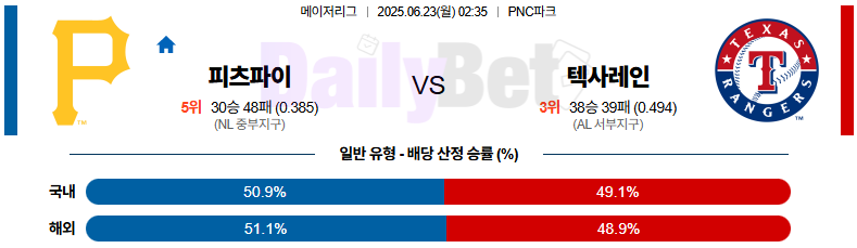 ⚾️ 피츠버그 파이어리츠 vs 텍사스 레인저스 (MLB)
